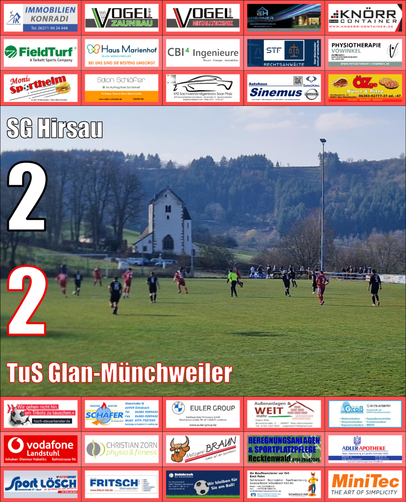 Zu Gast in Offenbach-Hundheim gab der TuS Glan-Münchweiler bei der ersten Naturrasen-Partie des Jahres die richtige Antwort auf die Blamage der Vorwoche. Gegen den Favoriten, die SG Hirsau, stand nach einer starken Leistung ein 2:2 (1:1) Unentschieden.
